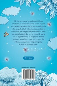 Als Lotte weer op bezoek gaat bij haar vriendin, de kleine eenhoorn Astra, zijn de voorbereidingen voor het grote zomerfeest in volle gang. Het hele eiland van de eenhoorns is versierd met de prachtigste bloemen. Maar hoe komt het toch dat het zo vreselijk warm is? Er is geen wolkje te bespeuren en alle bloemen verwelken... Zou het kunnen dat Schaduw, de gemene magische pony, de wolken gestolen heeft? Voor kinderen van 9 tot 11 jaar