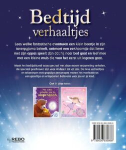 Lees welke fantastische avonturen een klein beertje in zijn toverpyjama beleeft, ontmoet een eekhoorntje dat liever met zijn oppas speelt dan dat hij naar bed gaat en leef mee met een kleine muis die voor het eerst uit logeren gaat. Maak het bedtijdritueel extra speciaal met deze mooie verzameling verhalen, die speciaal geschreven zijn voor kinderen tot vijf jaar. De lieve verhaaltjes en tekeningen met grappige personages maken het voorlezen tot een gezellige en ontspannen belevenis voor jou en je kind.