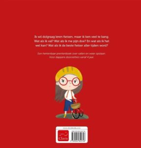 Ik wil dolgraag leren fietsen, maar ik ben veel te bang. Wat als ik val? Wat als ik me pijn doe? En wat als ik het wel kan? Wat als ik de beste fietser aller tijden word? Een herkenbaar prentenboek over vallen en weer opstaan. Voor dappere doorzetters vanaf 4 jaar.