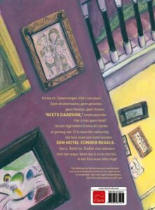 geen feestjes, geen foutjes. 'NIETS DAARVAN,' roept papa dan. 'Het is hier geen hotel!' Op een dag hebben Emma en Tijmen er genoeg van. Er is maar één oplossing: het huis moet een hotel worden. EEN HOTEL ZONDER REGELS. Dat is beter en leuker voor iedereen. Ook voor papa. Want wie is er nu niet blij in een huis waar alles mag?