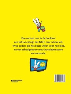 Een verhaal de hoofdrol een lief klein konijn dat NIET naar school wil, twee ouders die het beste willen voor hun kind, en een schoolgebouw met chocolademousse en trommels.