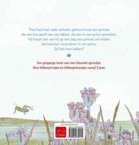 Een grappige twist aan een klassiek sprookje. Voor kikkerprinsjes en kikkerprinsesjes vanaf 5 jaar. Theo had heel vaak verhalen gehoord over een prinses die een kus geeft aan een kikker, die dan in een prins verandert. Hij hoopt dat ook hij op een dag een prinses zal vinden die hem kan veranderen in een prins. Zal het hem lukken?